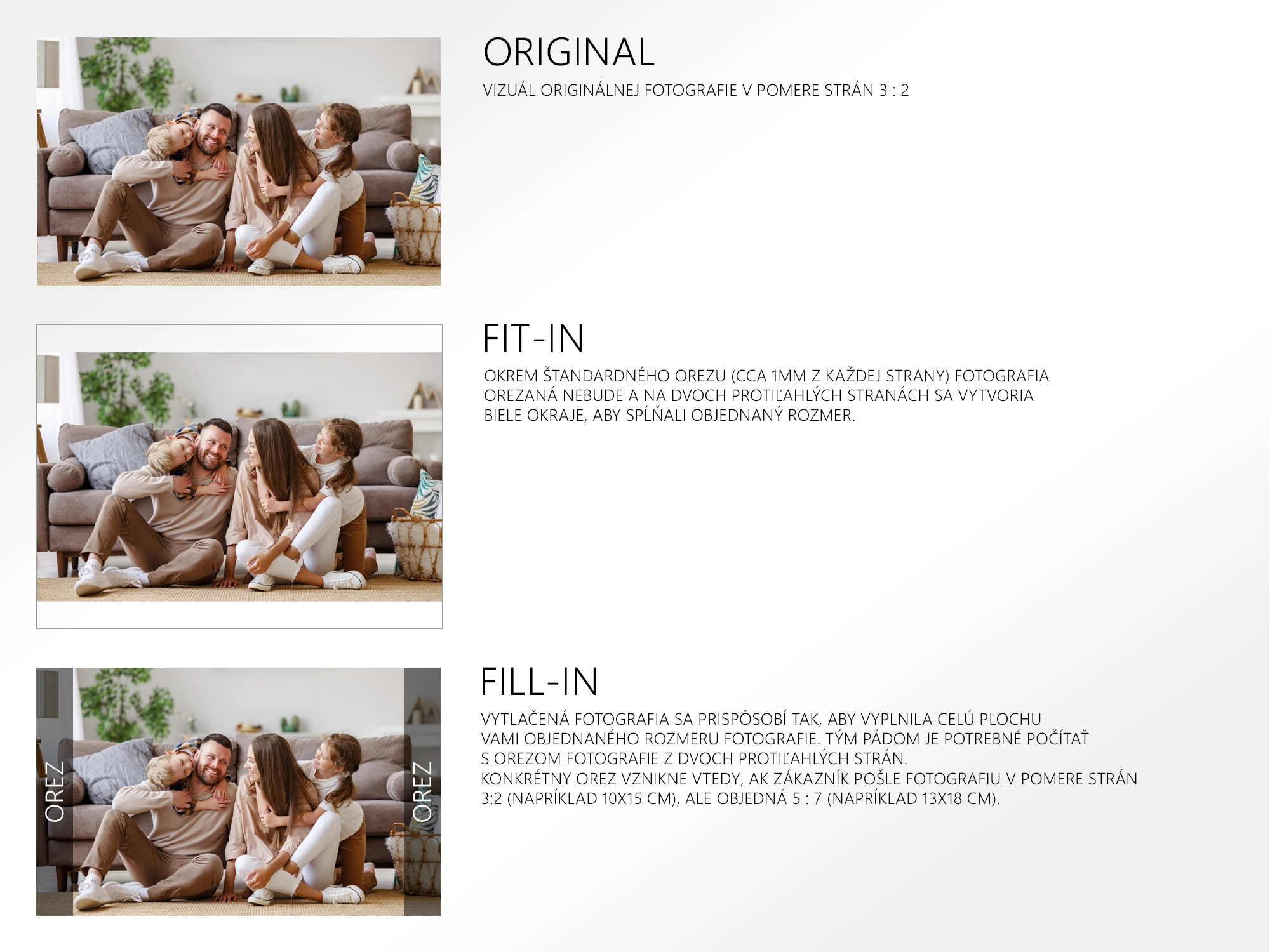 Fotografia nebude orezaná, ale z dvoch protiľahlých strán sa vytvoria biele okraje. Celý obsah zostáva zachovaný, len sa zmenší tak, aby sa zmestil do objednaného rozmeru.